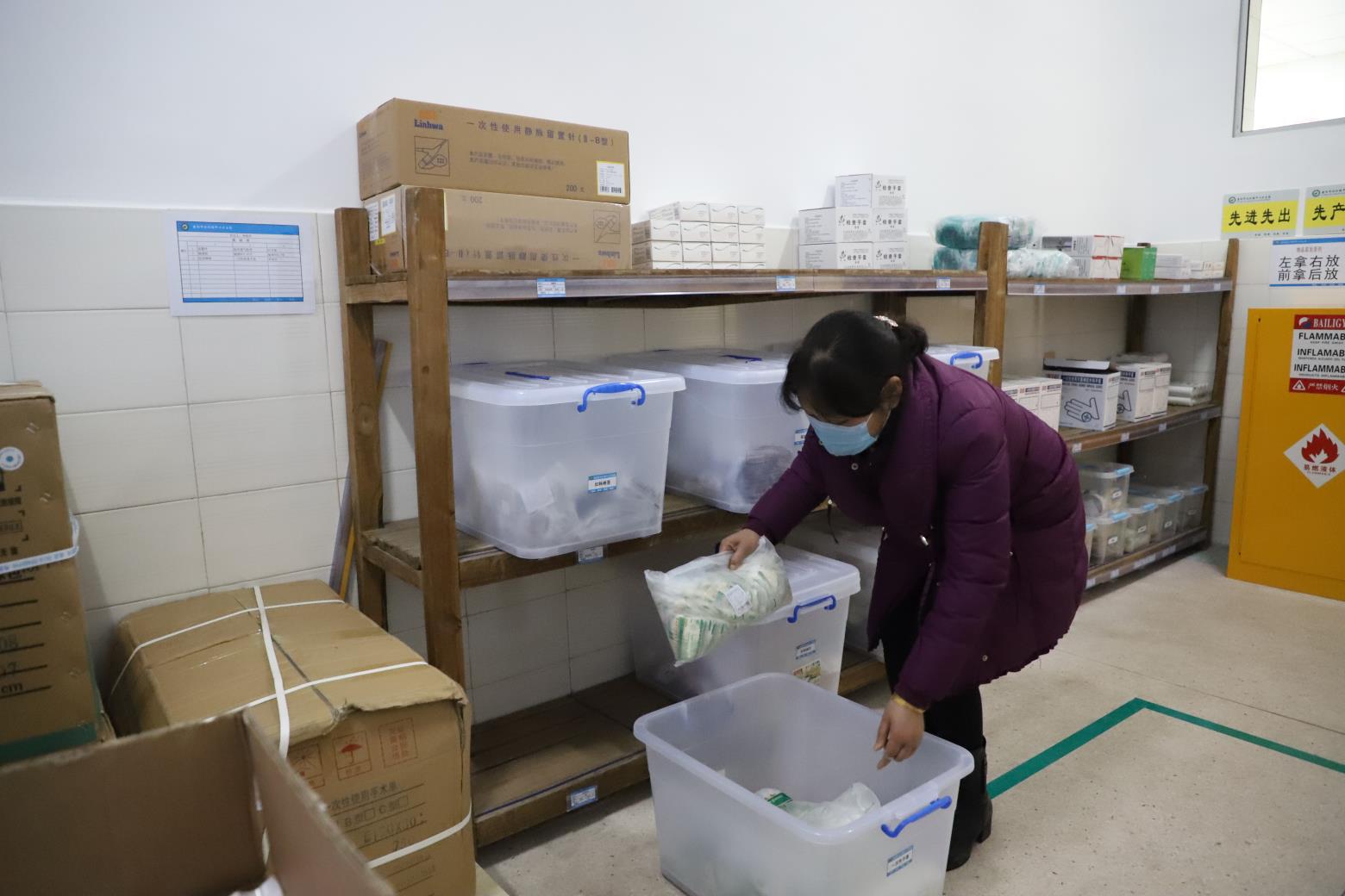(沧水铺镇中心卫生院工作人员在整理防控物资)