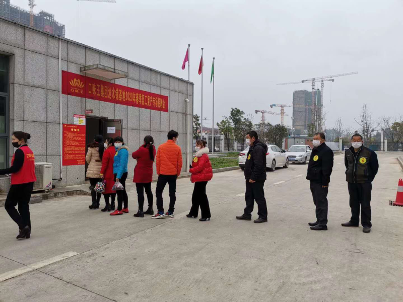 此次复工复产专场招聘会为期9天,为确保疫情防控期间招聘安全,招聘会按乡镇(街道)分批组织实施,以村为单位,实行专车接送,专人带队入场。每个求职者都必须经过安全检测(量体温和消毒),分发序号、待聘室临时报名处审核证件(再次测量体温)、面试,观看培训视频,填写《员工入职申请表》、现场体检四道程序,对合格者发放《初步意向录取单》。