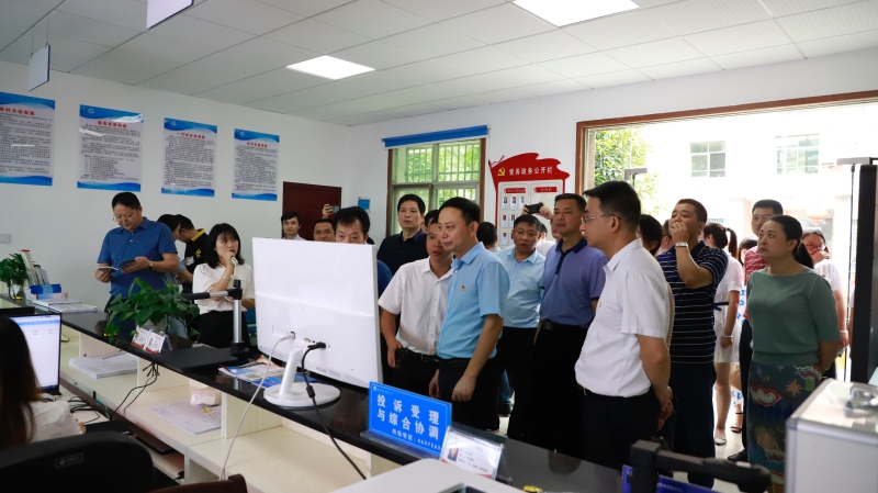 与会人员先后参观了泉交河镇新松桥村和奎星村的便民服务中心,泉交河镇党群和政务服务大厅,听取了镇、村两级在为群众提供党务、政务、村务、商务等服务方面所做的工作。赫山区近年来以群众需求为导向,深化“一件事一次办”改革,大力推进基层公共服务(一门式)全覆盖,畅通服务群众的“最后一公里”,实现了“数据多跑路、群众少跑腿”,提高群众获得感、满意度。目前,在泉交河镇的村(社区)一级就可以直接办理党组织关系转接、流动党员活动证、老年优待证、生育服务登记、城乡居民基本医疗保险参保登记等事项。