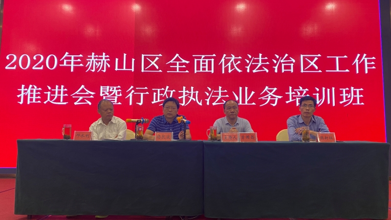 为深入推进全面依法治区,提高全区行政执法队伍整体素质,增强法治观念,9月15日,赫山区召开2020年全面依法治区工作推进会暨行政执法业务培训班。区司法局党组书记曾国昌主持开班仪式,区委常委、政法委书记、区全面依法治区办主任杨凯波出席开班仪式并作动员讲话。