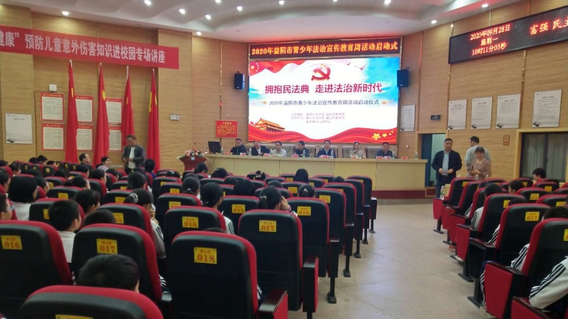 9月28日上午,2020年益阳市青少年法治宣传教育周活动启动仪式在梓山湖学校隆重举行。此次活动由市司法局、市教育局主办,赫山区司法局、赫山区教育局、梓山湖学校承办。活动的主题是“拥抱民法典,走进法治新时代”,市、区教育局、司法局相关领导出席活动。区政府教育督导室主任督学、区教育局党组成员贺永宏主持仪式。