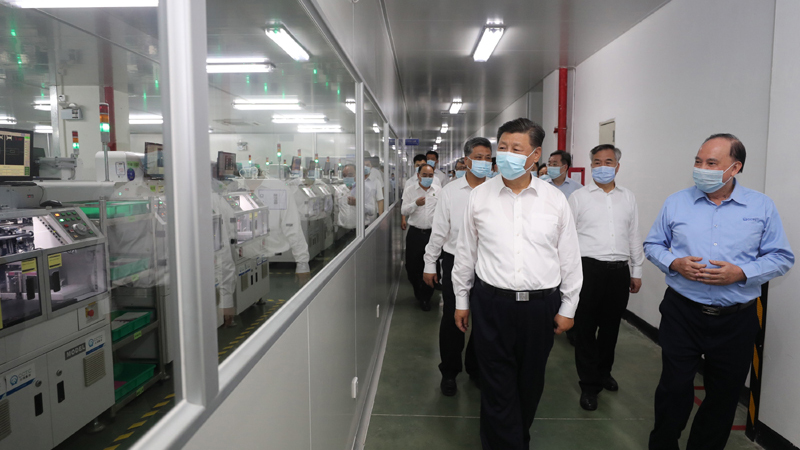 离开牌坊街,习近平来到潮州三环(集团)股份有限公司调研。50年来,这家企业坚持自主创新,不断推动产业升级,在电子元件、先进材料研发和生产上走在行业前列,一些产品产销量位居全球前列。疫情期间,企业在坚持严格疫情防控的同时,积极复工复产,产销量实现了逆势上扬。在公司展厅,习近平察看特色产品展示,详细询问产品应用、技术优势、市场销售等。他还走进实验室和生产车间,了解企业坚持自主创新、推动传统制造业转型升级以及开拓国内国际市场等情况。习近平强调,自主创新是增强企业核心竞争力、实现企业高质量发展的必由之路。希望你们聚焦国内短板产品,在自主研发上加倍努力,掌握更多核心技术、前沿技术,增强企业竞争和发展能力。面对世界百年未有之大变局,面对国内外发展环境发生的深刻复杂变化,我们要走一条更高水平的自力更生之路,实施更高水平的改革开放,加快构建以国内大循环为主体、国内国际双循环相互促进的新发展格局。大家要深刻领会党中央战略意图,在构建新发展格局这个主战场中选准自己的定位,发扬企业家精神,推动企业发展更上一层楼,为国家作出更大贡献。