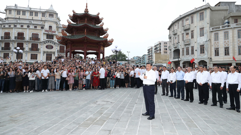 10月12日至13日,中共中央总书记、国家主席、中央军委主席习近平在广东考察。这是13日下午,习近平在汕头市小公园开埠区,同当地群众和游客亲切交流。新华社记者 王晔 摄