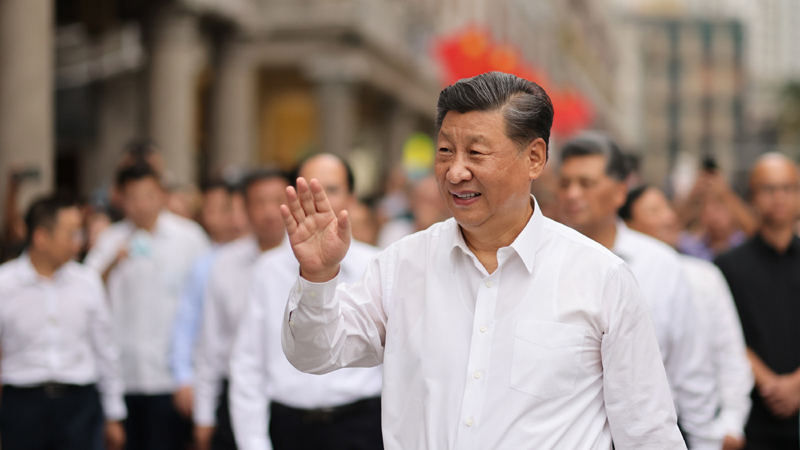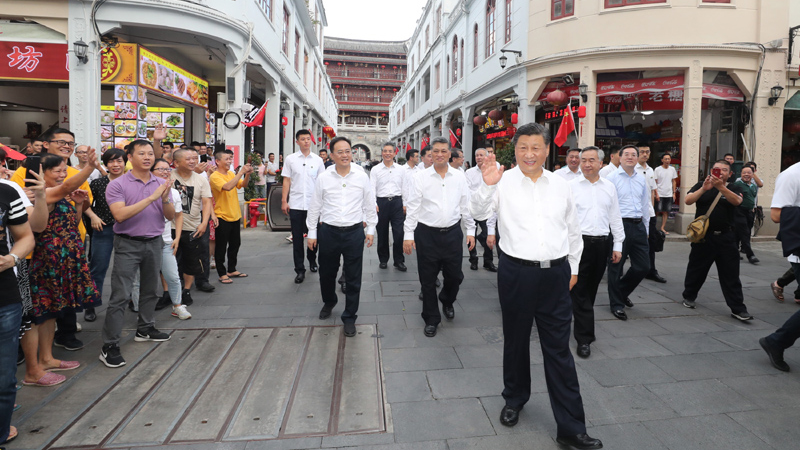 10月12日至13日,中共中央总书记、国家主席、中央军委主席习近平在广东考察。这是12日下午,习近平在潮州古城牌坊街考察时,向群众挥手致意。新华社记者 王晔 摄