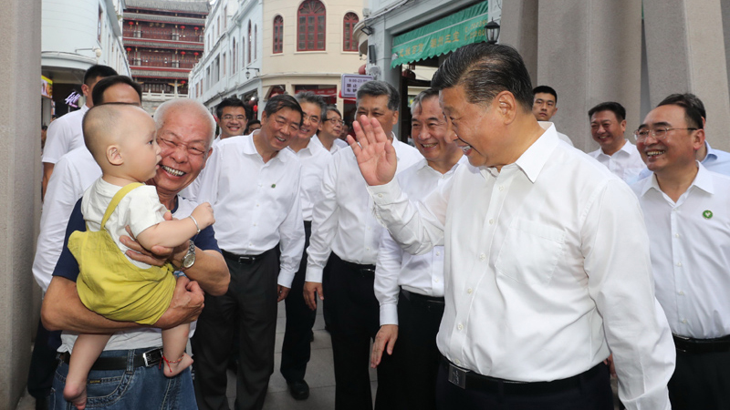 10月12日至13日,中共中央总书记、国家主席、中央军委主席习近平在广东考察。这是12日下午,习近平在潮州古城牌坊街考察时,同群众亲切交流。新华社记者 王晔 摄