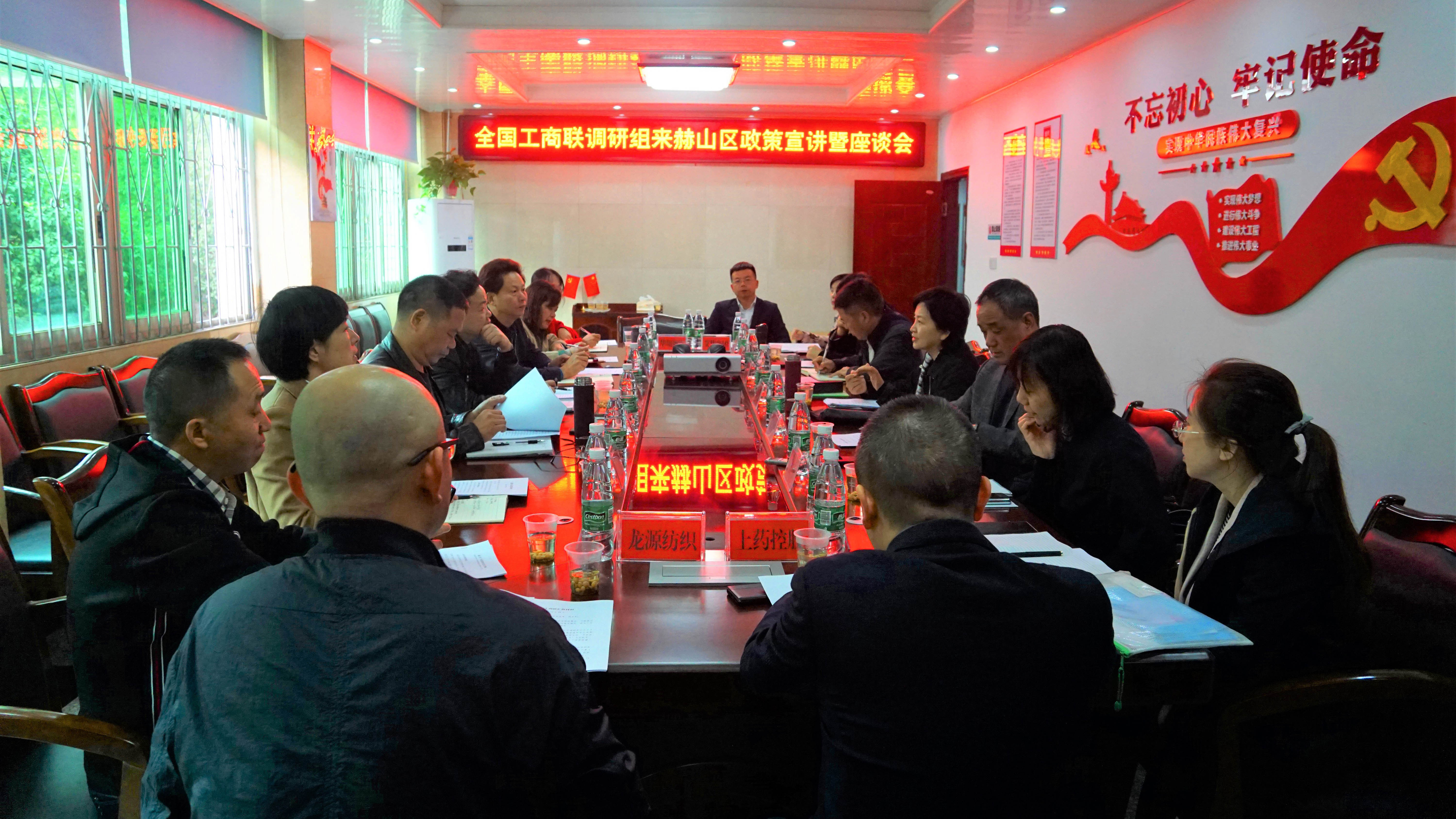 29日上午,在赫山区工商联机关会议室召开了座谈会,调研组现场听取了赫山区工商联近两年重点工作及企业复工复产情况,市、区两级工商联及赫山区企业家代表就疫情之后企业和行业发展中遇到的问题、商协会组织服务企业现状及困难、对工商联进一步优化民营经济发展举措等进行了交流发言。随后全国工商联执委、安徽省新龙川投资有限责任公司董事长张卫国传达学习了习近平总书记关于民营经济的重要讲话精神及惠企政策宣讲。