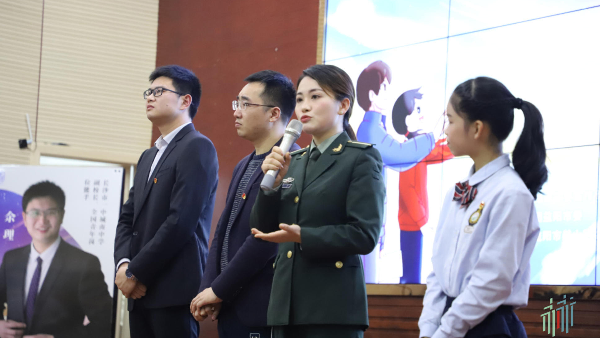 活动在庄严的国歌声中拉开序幕。随后,彭德怀纪念馆宣教员、湘潭市2020年“五四青年”奖章获得者何杰,中南大学湘雅医院心脏大血管重症监护专科护士长张磊,长沙市一中城南中学副校长、全国青年岗位能手余理向同学们宣讲党的十九届五中全会精神,他们分别以《这次,我们不会错过星辰大海》《我和我的“武汉亲人们”》《五年计划之“最”》为主题,将国家发展大计以生动活泼、通俗易懂的方式讲解呈现,与同学们面对面分享国家“十四五”规划,展望2035年的宏伟蓝图。