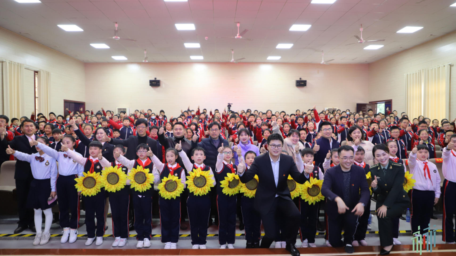 活动最后,全体人员一同奏唱了中国少年先锋队队歌《我们是共产主义接班人》,与会领导、嘉宾与学生一起点赞合影。