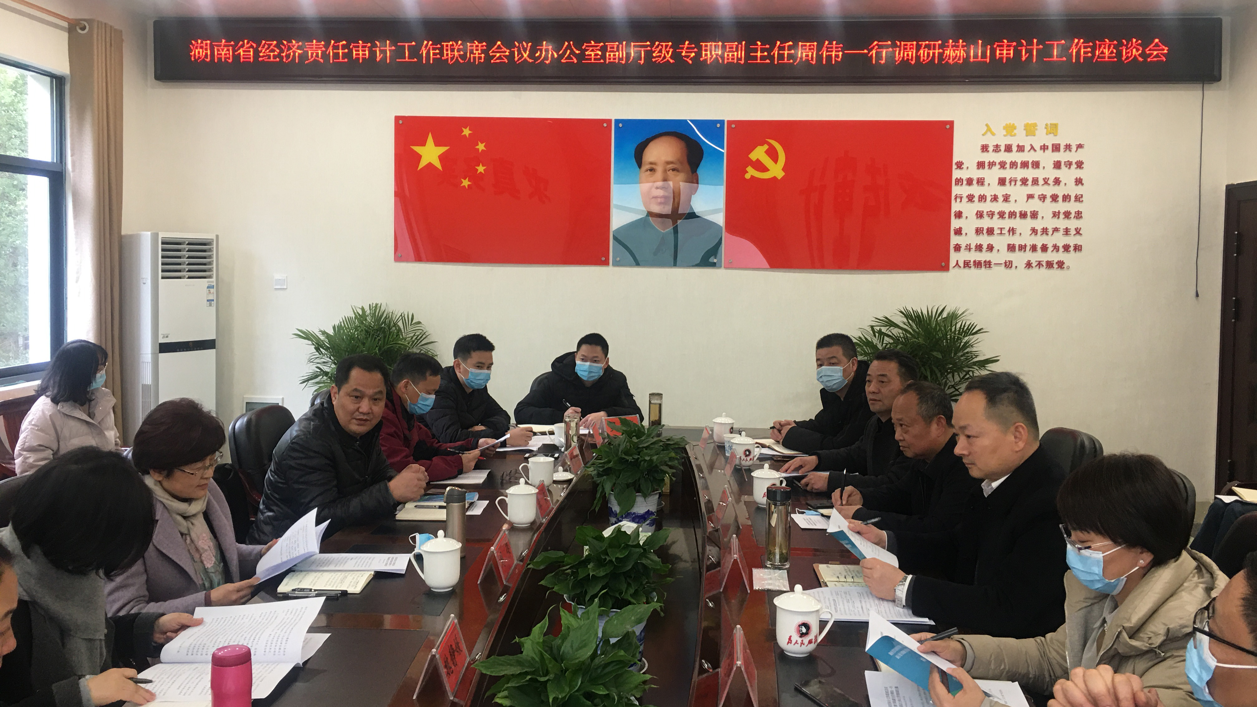 1月26日,省经济责任审计工作联席会议办公室副厅级专职副主任周伟一行来到赫山区审计局调研指导赫山经济责任审计工作开展情况。区委副书记、区长马文才,区政府三级调研员陈维国陪同调研。区经济责任联席会议制度成员单位的相关领导参加了座谈会。