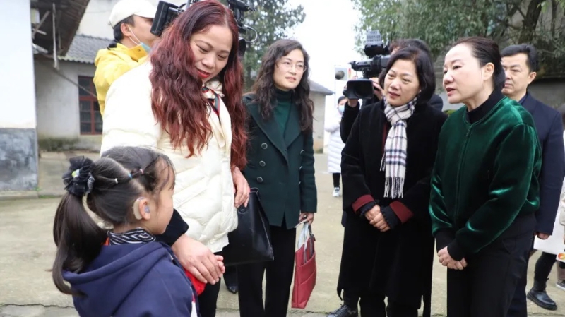 另一名困境女童妮妮是天生聋哑,父母也是聋哑人,平日由年迈多病的奶奶照顾,家庭十分困难。当得知女孩佩戴了人工耳蜗和助听器,“妮妮,你好!”姜欣亲切地与她交流,对面的小女孩害羞地微笑。