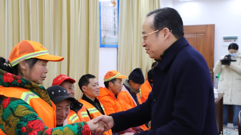 在区城管局,邓正安与环卫工人一一握手,感谢他们一年来为全区环境卫生作出的贡献,并为他们送上新春祝福。邓正安要求,区城管局要更加关心、关爱环卫工人,为他们解决实际困难,他希望全体城管执法人员和环卫工人不忘初心,坚守岗位,让群众过上一个整洁、有序、祥和的春节。