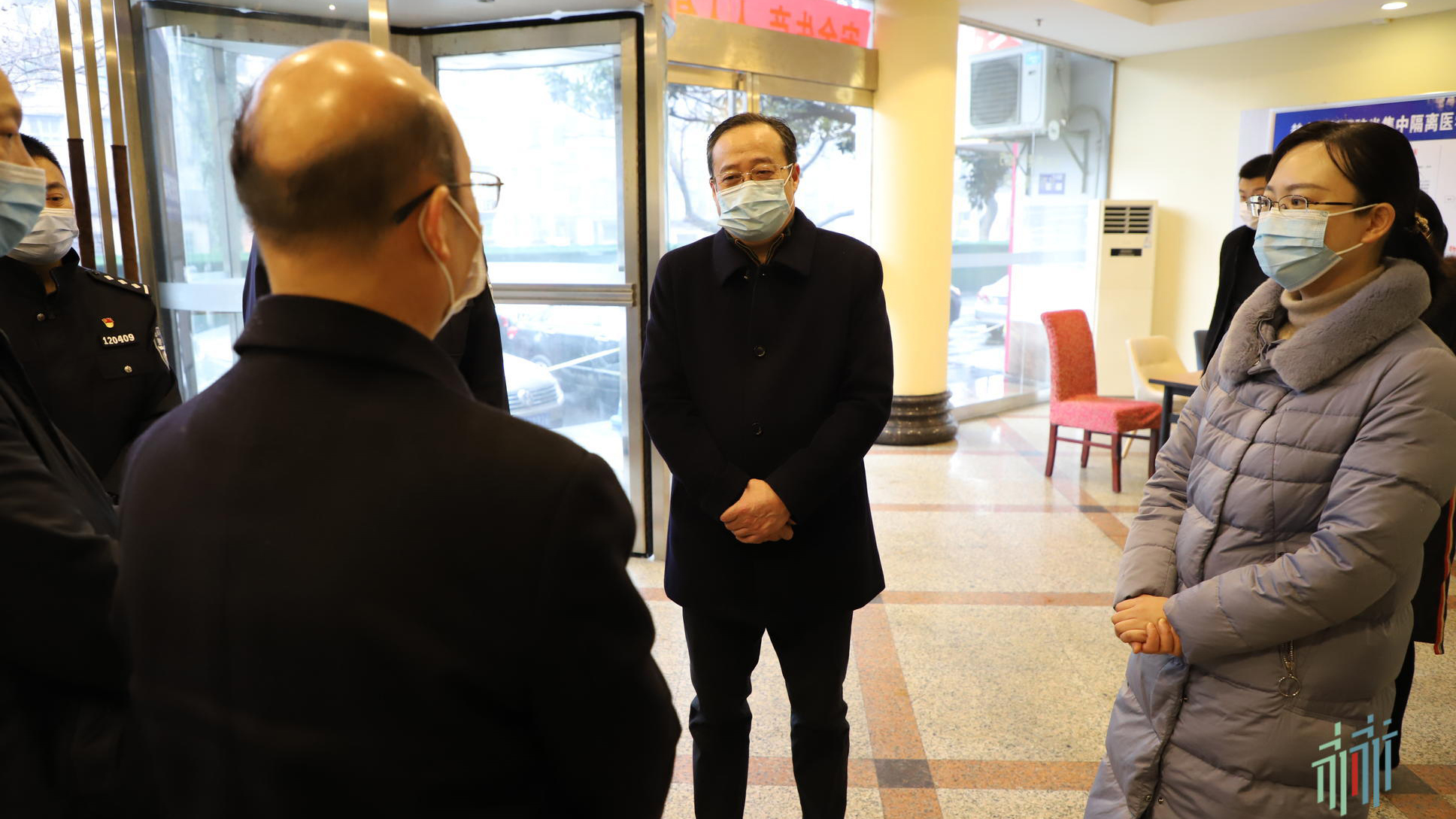 在区新冠肺炎集中隔离医学观察点,邓正安对坚守岗位的干部职工表示感谢与慰问。邓正安强调,要严格按照集中隔离观察点的工作要求和规范流程,做好隔离人员的心理疏导,保障他们的生活必需品,体现人文关怀,确保他们安全度过隔离期。要落实落细各项防疫措施,强化内部防护,做好各项后勤服务保障,确保工作人员健康安全。
