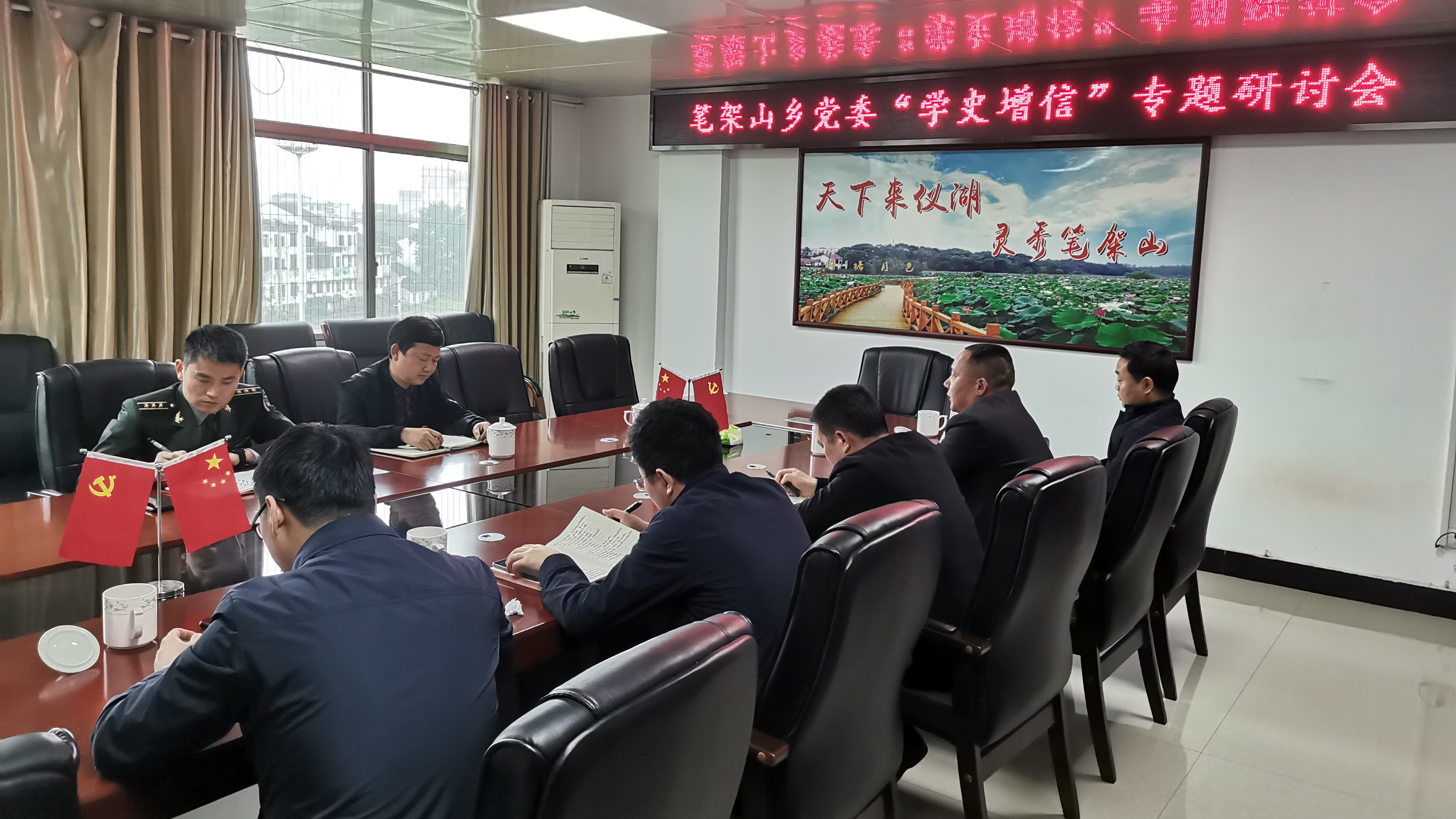 4月26日,笔架山乡党委举行“学史增信”学习研讨会,通过原原本本读原著、扎扎实实学党史,进一步深化对党的百年奋斗史的理解,确保高质量推动为民办实事等党史学习教育各项任务。区委常委、区人民武装部部长、区党史学习教育第八巡回指导组组长文万军,副组长姚红波到场指导。