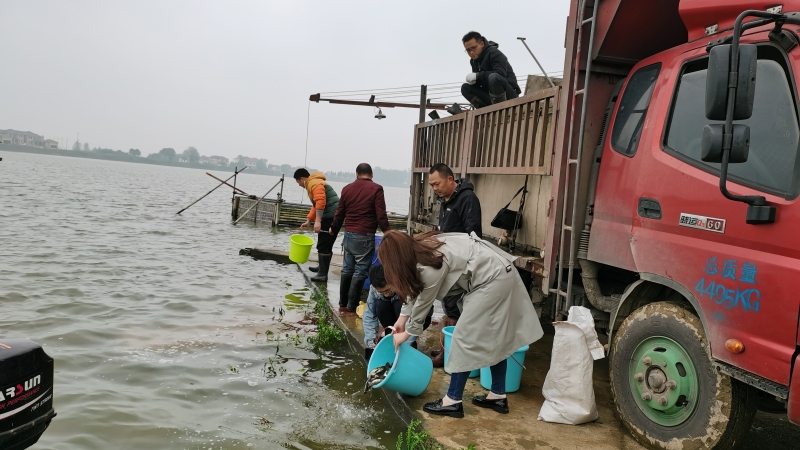 会后,指导组工作人员来到笔架山乡鹿角湖一起参加鱼苗放养行动。鹿角湖为该乡面积最大的自然湖泊,近年,为保护水环境生态,规范渔业秩序,笔架山乡逐步探索形成较为完善的河湖保洁、规范禁渔、科学捕捞和生态修复、增殖放流的依法管理养护制度。净化水质功能的滤食性鱼类鱼苗的增殖放养,有效遏制了鹿角湖水生生物资源的锐减势头,主要经济鱼类品种基本稳定,水产品自然产量稳步增长,鹿角湖水质显著改善。