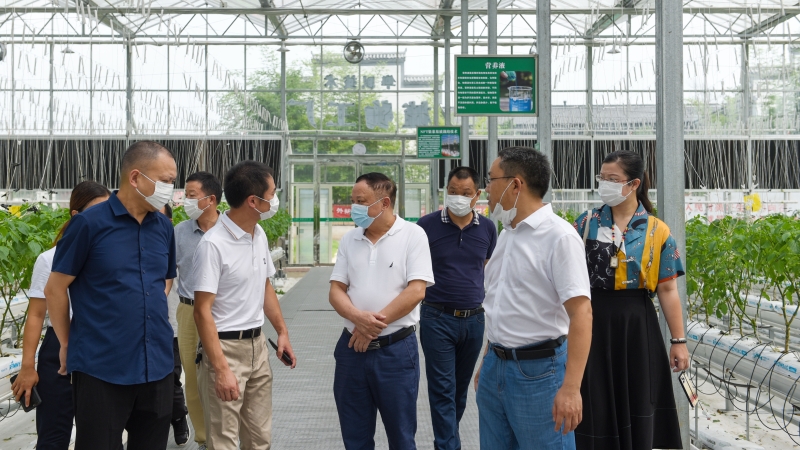 唐圣松一行深入竹泉山智慧农业第一村,实地察看了智慧农业技术展厅和蔬菜种植大棚,详细了解了企业生产规模、技术水平、产品销售等情况。