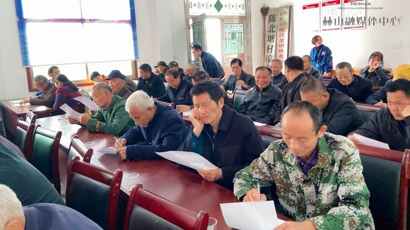 会上,村党总支书记汪辉汇报了整顿工作进展情况和取得的成效。“一书记”高山介绍了驻村工作队对销号工作的核查情况,宣读了关于同意陈北塘村软弱涣散党组织销号的评估意见。随后,在该村软弱涣散党组织整顿工作的满意度测评中,与会的党员和村民代表一致同意该村党总支如期销号。