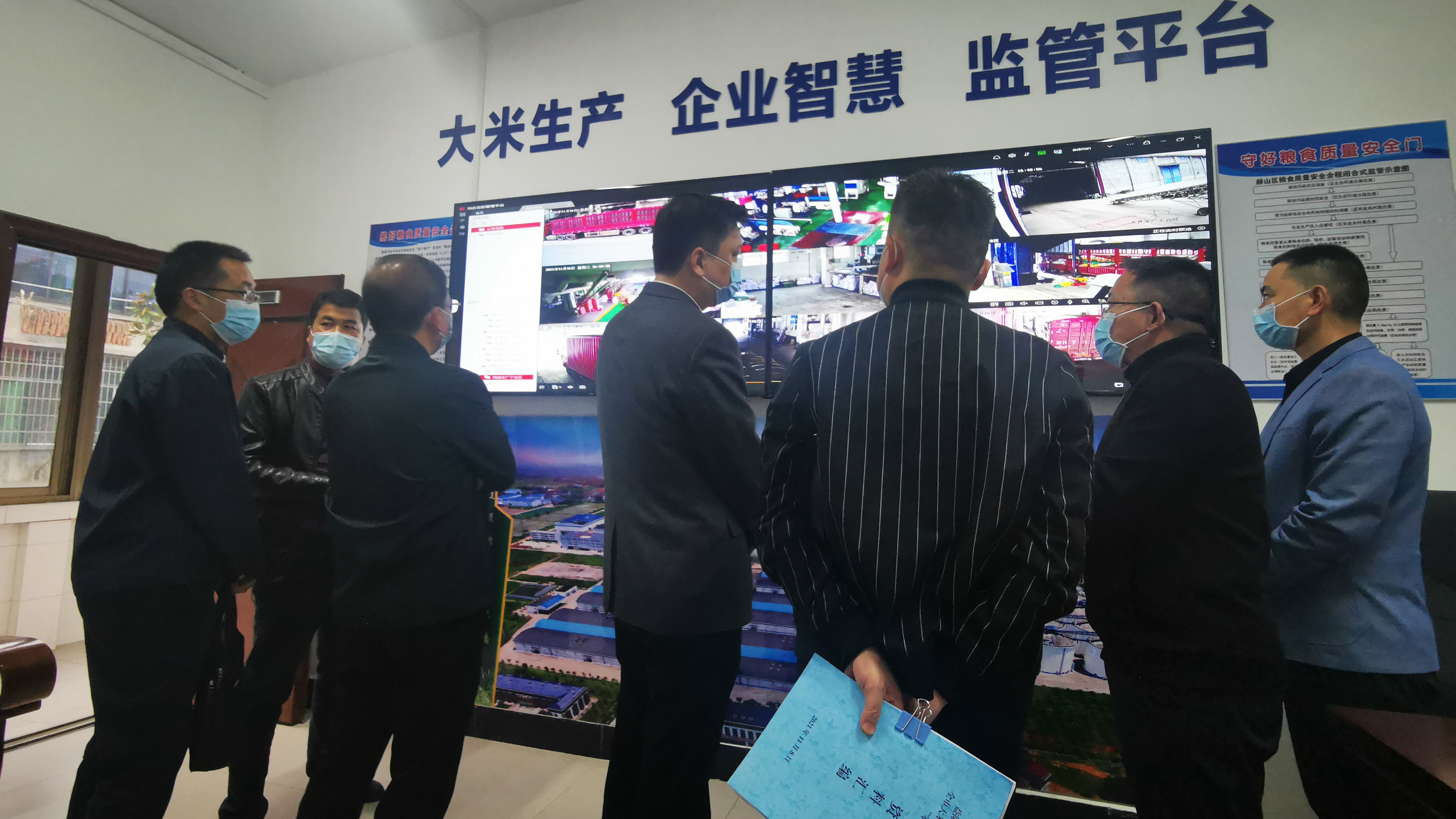 在智慧监管数据中心现场,调研组参观了数据中心运行及操作调度全过程。适时,工作人员通过监管平台发现某米企有装运约50吨成品大米的货车驶离厂区,接着又一辆大货车驶入装大米。市局龚悟云局长在监管平台前,果断指示现场的监管所执法人员赶赴该厂现场抽样、现场检查。“1”个智慧化监管平台,米企生产、线下监管、线上精准“3”方共治,全天候全过程实时监管的“1+3+N”体系形成。