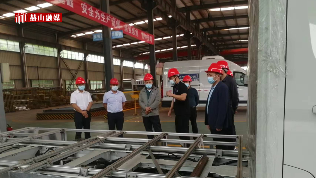 黄学工一行深入湖南上能汽车产业发展有限公司,认真听取了企业负责人关于企业安全生产及生产经营情况汇报,仔细查阅了安全生产相关资料,实地察看了安全与消防设备设施配备、安全防范措施落实、生产现场管理、环境卫生等情况。