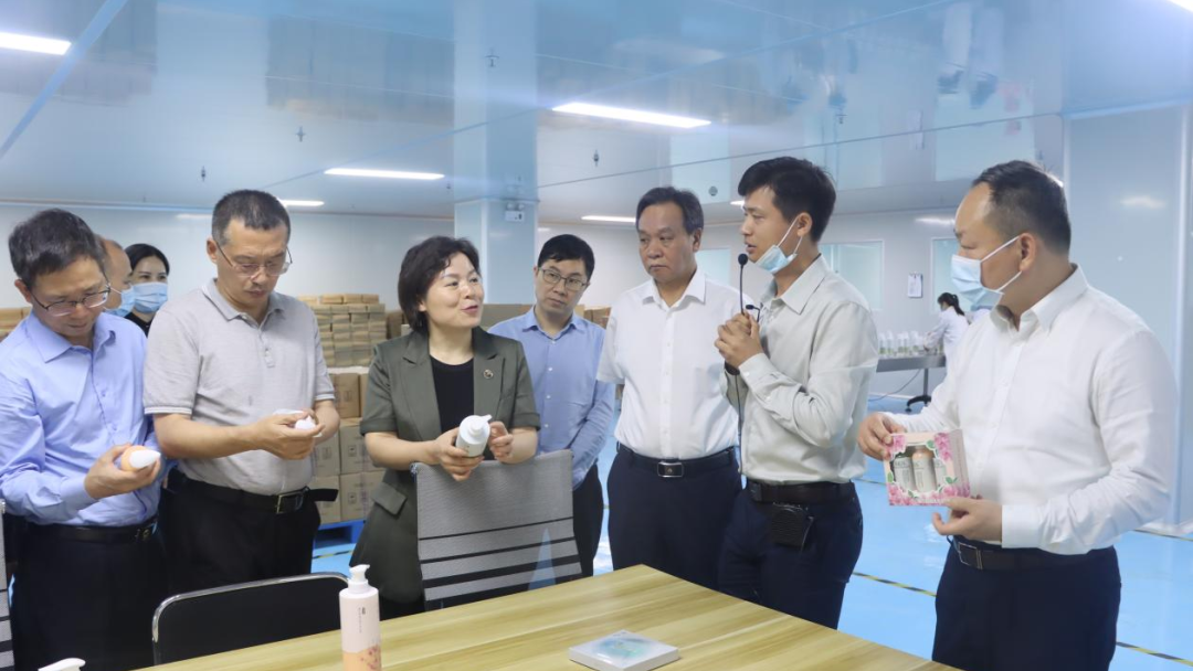 随后,调研组一行来到叶姿国际,听取企业负责人有关情况汇报,参观了生产车间、水处理间、包材通道,详细了解了品牌文化、化妆品研发、生产、经营运行情况。