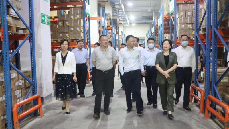 在津湘药业,调研组一行参观了药品仓储中心,实地察看了储备仓库药品储备情况。
