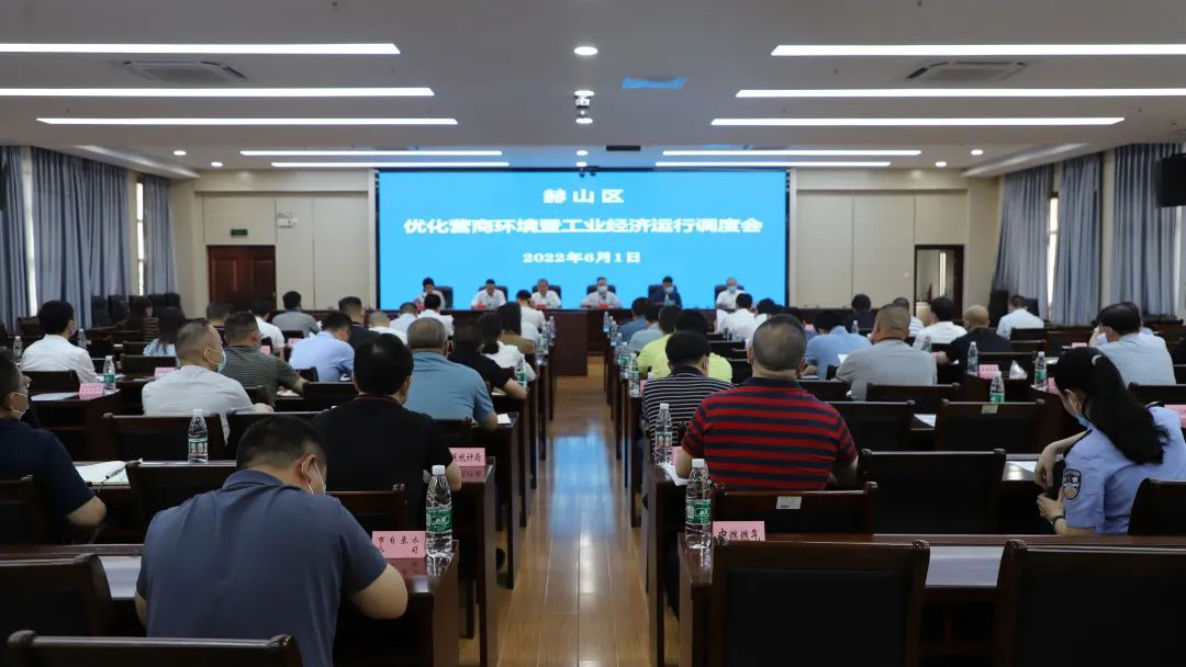 会议组织观看了赫山区营商环境暗访片。副区长陈哲杰通报全区1-4月份工业经济运行情况。区委常委、常务副区长马慧解读了《赫山区2022年营商环境大优化行动方案》。