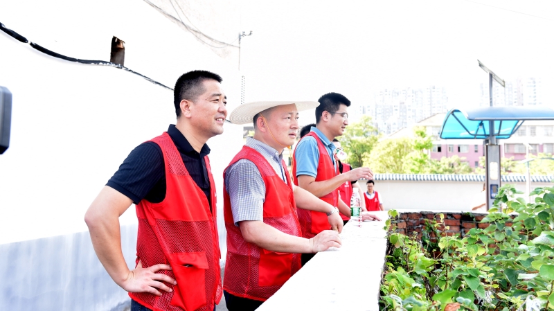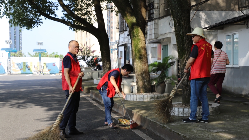 党员干部深入背街小巷和老旧小区,带头开展卫生清扫,劝导楼道堆物等不文明行为,引导人民群众共同维护中心城区环境卫生及市容秩序。