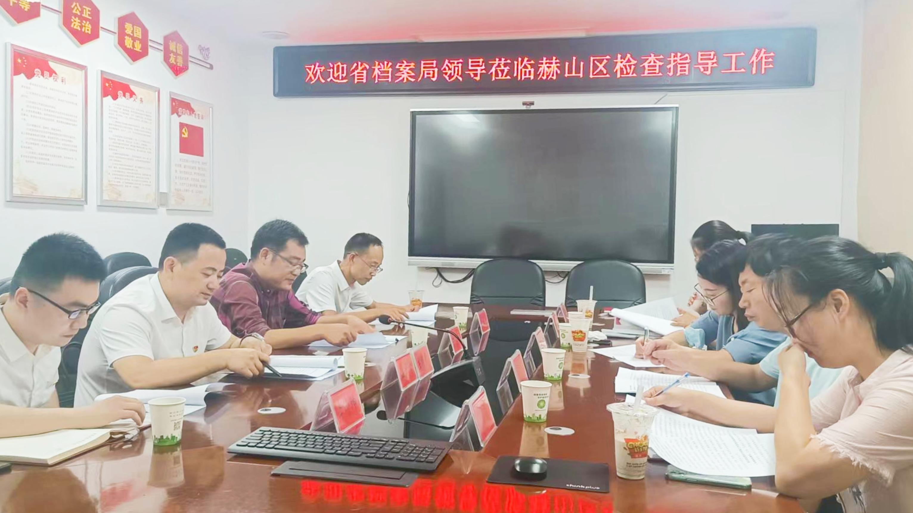 7月29日上午,在市委副秘书长、市档案局局长潘海湘,区委常委、区委办主任陈维民的陪同下,省委办公厅档案业务指导处处长彭玉一行三人对赫山区档案工作开展监督检查。