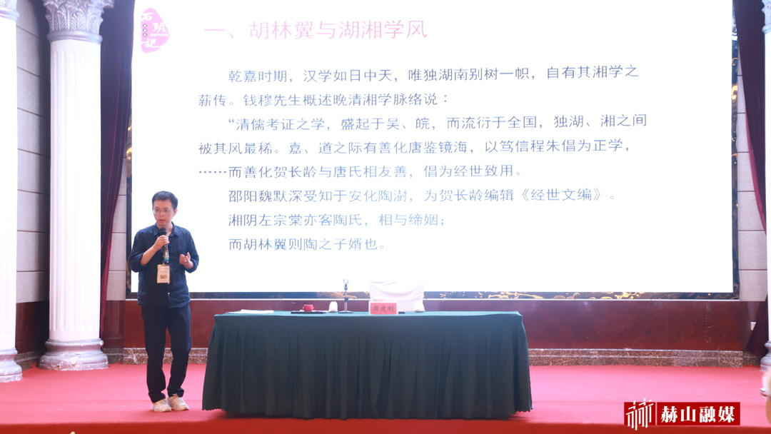 9月18日上午,“胡林翼与晚清变局”主题读书会在益阳世纪豪廷大酒店举行。郑佳明以《胡林翼与湘军》为主题,从胡林翼的主要经历、协调各方关系、凝聚湘军集团等几个方面,阐述了胡林翼的生平以及在治军方面的思想与成就,让与会人员更深入地了解了当时的历史和胡林翼的思想精髓。周建刚以《胡林翼与湘军的成功》为主题,从胡林翼与湖湘学风、胡林翼对湘军的贡献、湘军对太平天国胜利的缘由分析三个角度,分享胡林翼丰富的人生经历、廉政品德、鉴才荐才、治兵功绩、治事才能、处世之道。