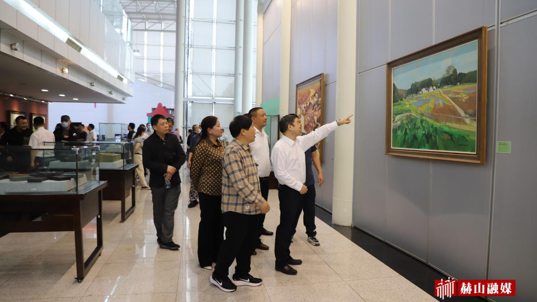 9月22日,“山乡巨变·赫山行”全国中青年油画家作品展在省文化馆隆重开展。市人大常委会党组副书记、副主任汤瑞祥,省文化馆党委书记、馆长叶伟平,市人大常委会研究室主任易青群,市文旅广体局党组成员、工会主席曾学任,市文联副主席胡向荣,区委常委、宣传部部长高志荣,副区长蔡丽环,区政协副主席夏超出席。原湖南省美术出版社社长萧沛苍宣布开幕。