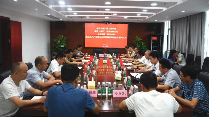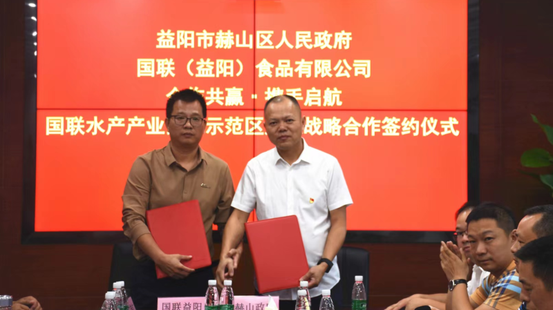 9月30日上午,赫山区人民政府和国联(益阳)食品有限公司“合作共赢·携手启航”水产产业振兴示范区建设战略合作协议签约仪式在兰溪粮食产业园举行。副区长赵嘉喜与国联副总经理梁光元签署协议。市区农业部门、国联集团、赫山区有关区直部门和乡镇街道负责同志出席签约仪式。