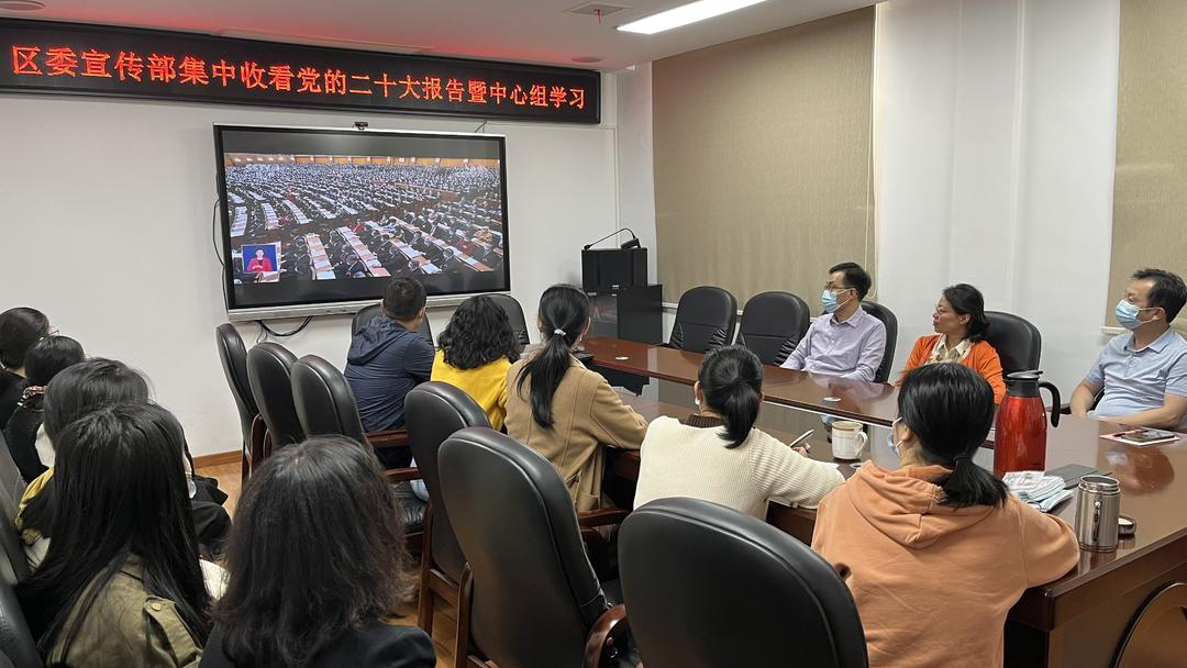 区委宣传部、区委网信办集中收看中国共产党第二十次全国代表大会开幕会。