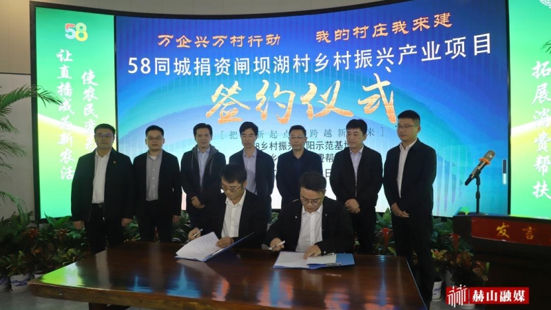 11月24日,58同城捐资闸坝湖村乡村振兴产业项目现场签约仪式在益阳乡村振兴消费帮扶专馆举行。益阳市政协副主席、市工商联主席邓象庭,益阳市农业农村局副局长陈升平,赫山区委常委、宣传部部长高志荣出席签约仪式。