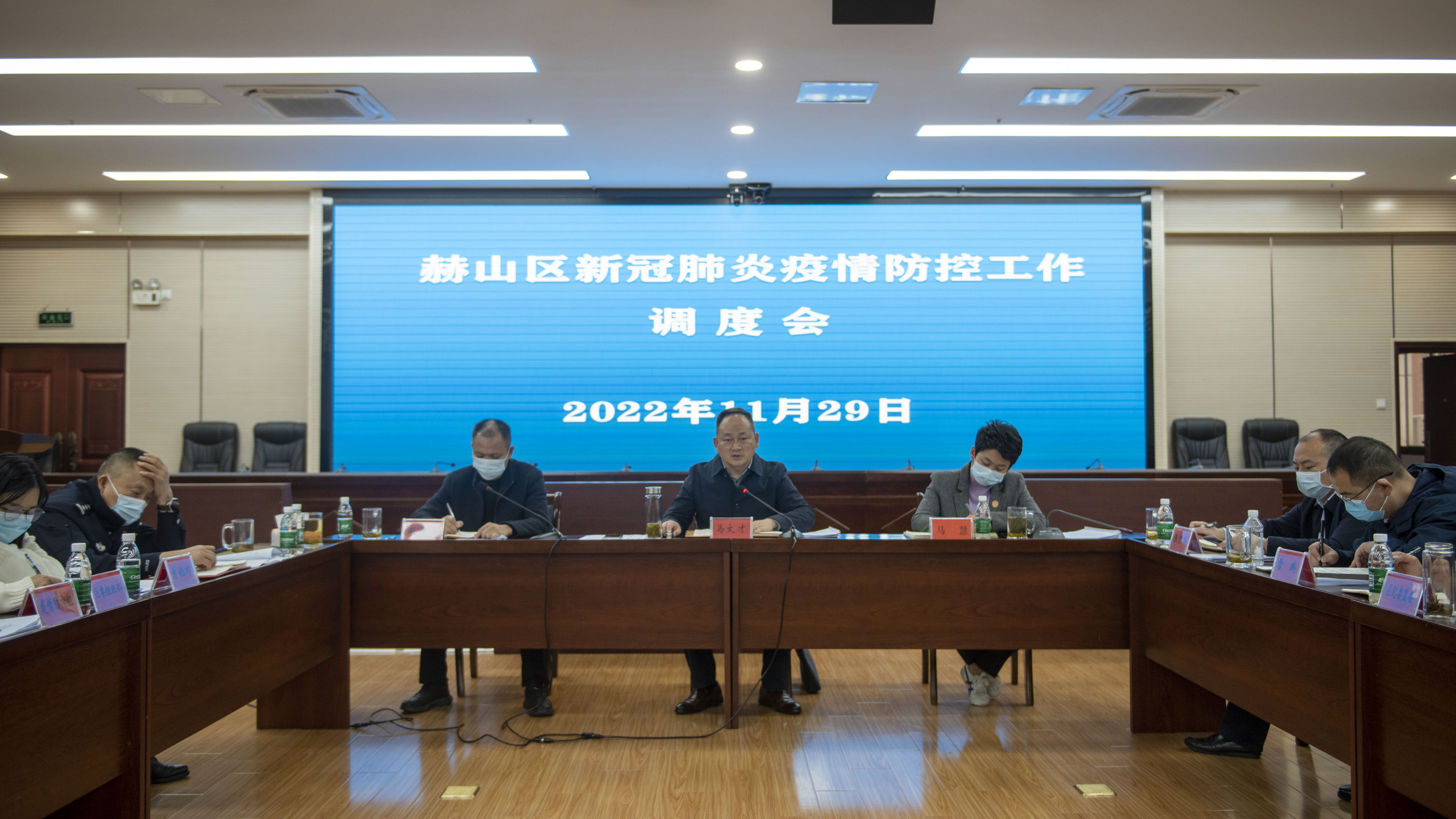 11月29日下午,区委副书记、区长马文才组织召开赫山区新冠肺炎疫情防控工作调度会议,强调要精准研判形势,保持清醒头脑,发扬斗争精神,以高度警觉抓实抓细疫情防控工作,坚决守护来之不易的防控成果。区领导马慧、陈哲杰、曾钰彬、赵嘉喜、雷鹏出席,区联防联控机制各工作组组长,各乡镇(街道、园区)和有关区直、驻区单位主要负责人参加。