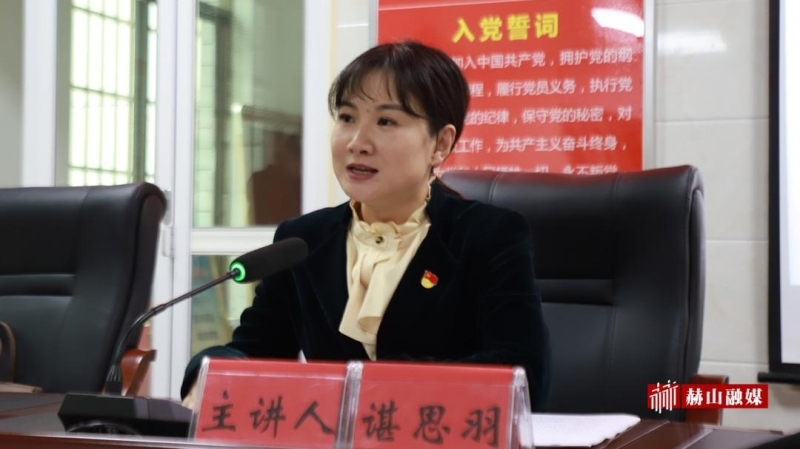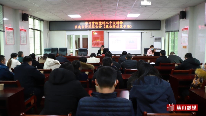 12月15日,区委常委、副区长谌思羽到金银山街道粟公港社区宣讲党的二十大精神。