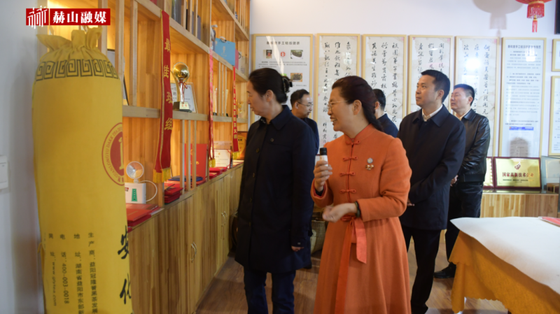 在湖南惠和堂茶文化有限公司,总经理蔡红梅介绍了惠和堂的历史文化、市场销售、品牌宣传和推广等发展情况,并从践行茶科技、传播茶文化、精进茶叶加工技术三方面热情阐述自己的工作,得到了调研组的一致肯定。