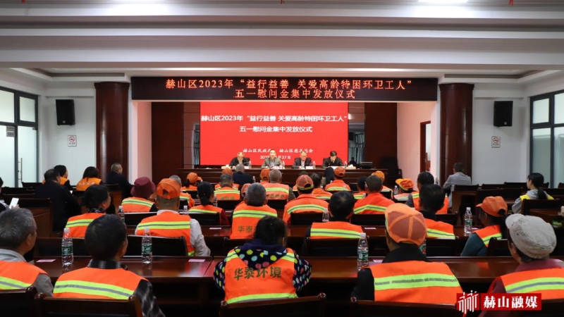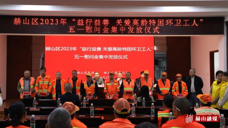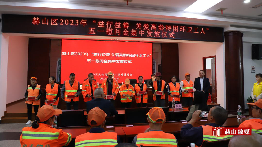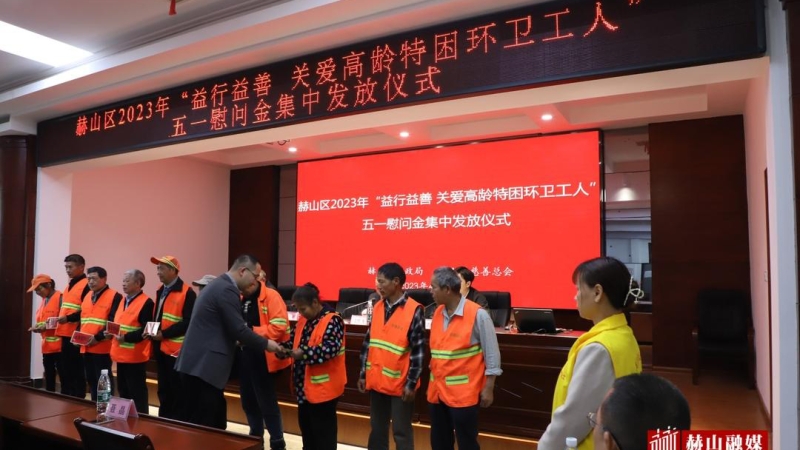 赫山区举行2023年“益行益善•关爱高龄特困环卫工人”五一慰问金集中发放仪式
