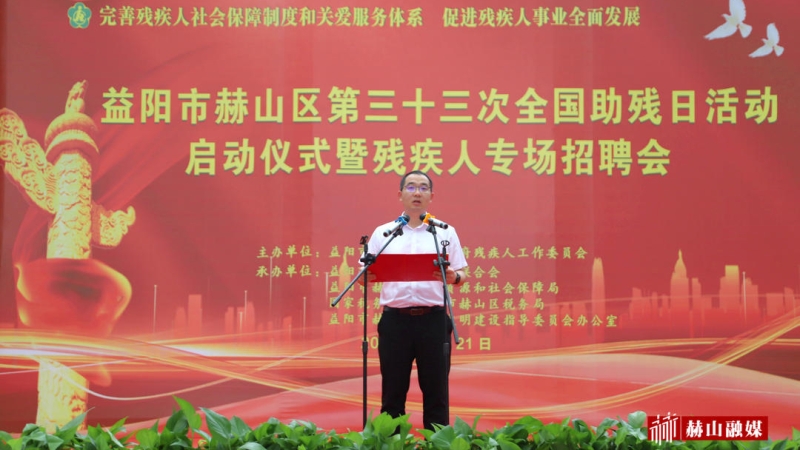 5月21日是第三十三次全国助残日,今年的活动主题是完善残疾人社会保障制度和关爱服务体系,促进残疾人事业全面发展。当天上午,赫山区举办第三十三次全国助残日活动启动仪式暨残疾人专场招聘会。副区长雷鹏出席活动并宣布活动启动。