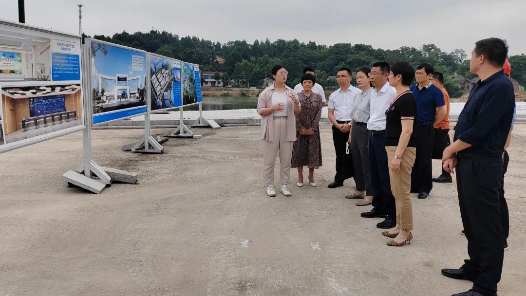 泥江口镇政府工作人员为一行讲解基地规划与建设情况