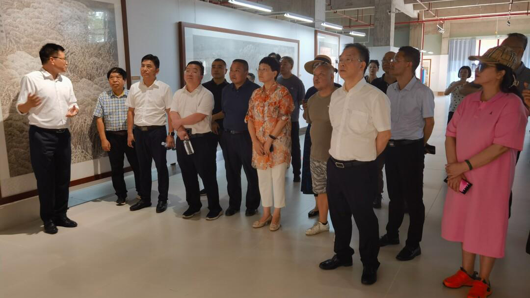 在兰溪洞庭画院,视察组一行参观了由益阳市人民政府、浙江师范大学、湖南省中国画学会联合举办的“国家艺术基金美术项目《芦花如雪》系列中国画作品展览”,并就作品的创作思路、构图细节及深层内涵与赵溅球教授进行了深入探讨交流。