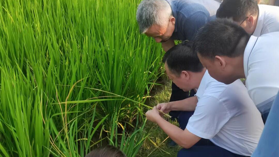 “当前水稻主要发生了哪些病虫害?”“采取了哪些防控措施?”“防治效果怎么样?”调研组一行先后来到笔架山中塘基地、欧江岔镇金盆村的田间地头,实地察看水稻长势、病虫害发生情况和防治效果,与种植大户、当地农技人员深入交流,了解当前水稻病虫害发生情况、防控措施、防控进度等,并对当前水稻病虫害防控提出了针对性的指导意见。
