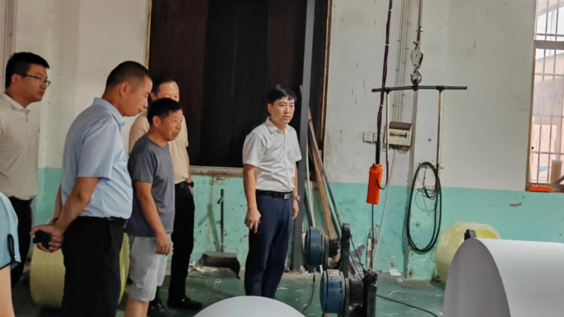 高志荣一行在科发特种纸业车间查看设备运行情况