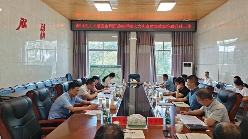 8月18日下午,区人大常委会党组书记、主任胡佐颂带队调研岳家桥镇人大和农村集体经济联合社工作,区人大常委会副主任贾东晖参加调研。