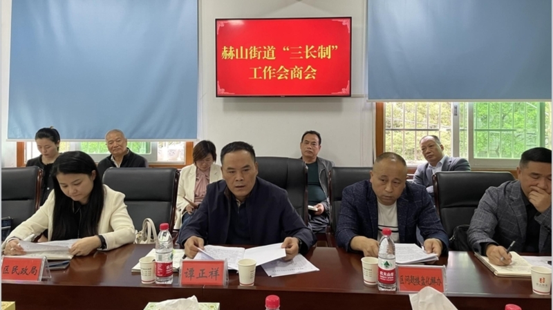 10月8日,赫山街道召开“三长制”工作会商会,区委常委、政法委书记、三级调研员谭正祥出席会议,区民政局、区住建局、区自然资源局、区文化旅游广电体育局等部门负责人,街道主要负责人和各社区“三长”代表参加。