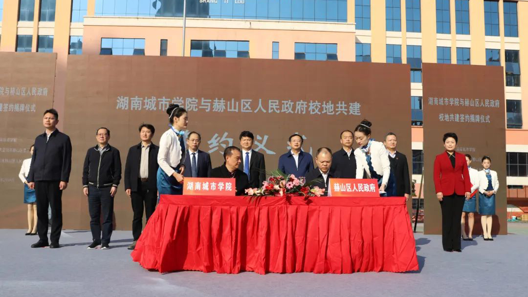 2月18日,湖南城市学院与赫山区人民政府校地共建签约揭牌仪式举行。湖南城市学院党委书记汤放华,湖南城市学院党委副书记、校长何振,湖南城市学院党委委员、副校长雷存喜,市人民政府副厅级干部喻国良,市人民政府副秘书长袁野,市教育局党组书记、局长彭伟才,高新区管委会副主任黄众志,区委书记周卫星,区委副书记、统战部部长马慧,区委常委、常务副区长胡金勇,副区长赵嘉喜出席签约揭牌仪式。湖南城市学院党政办、教务处、学科建设与发展规划处、教师教育学院、人事处、科技处等处室负责人及教师教育学院骨干教师,赫山区及高新区相关部门主要负责人,赫山区乡镇(街道、园区)主要负责人及教育系统相关负责人参加签约揭牌仪式。