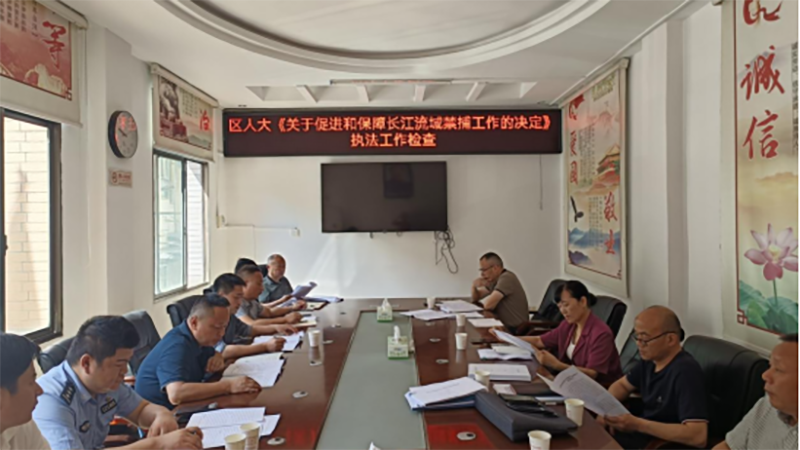 5月14日,区人大常委会副主任贾东晖带队到会龙山街道检查《关于促进和保障长江流域禁捕工作的决定》的执法情况。