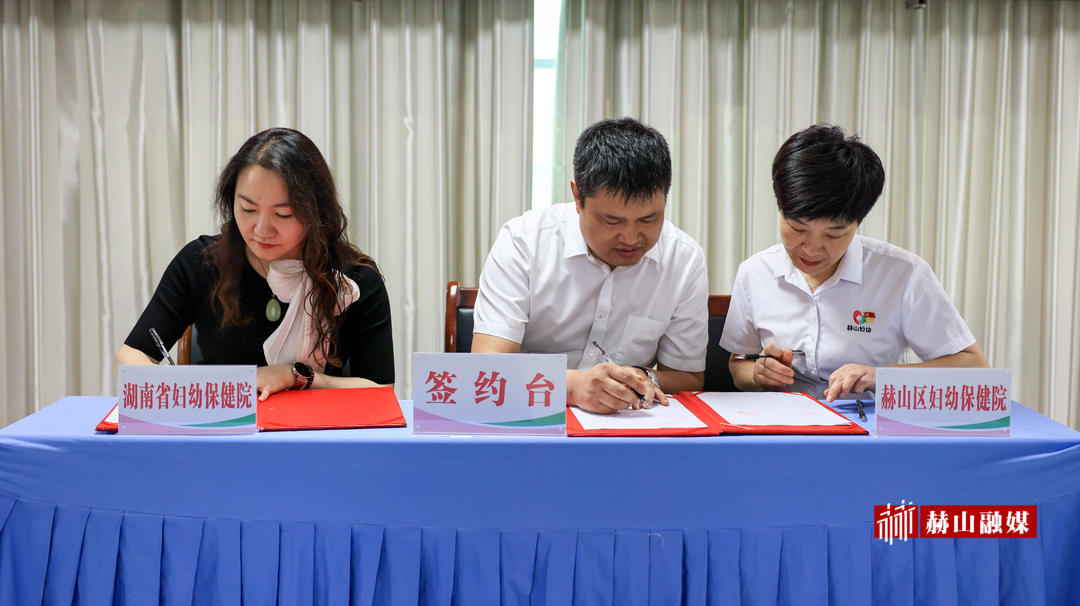 签约授牌仪式上,湖南中医药大学第一附属医院、湖南省妇幼保健院与赫山区妇幼保健院进行现场签约,并为“湖湘五经配伍针推学术流派传承工作室--刘氏小儿推拿二级工作站”和“湖南省妇幼保健院梁惠珍专家工作室”进行授牌;贾东晖、赵嘉喜等领导共同为赫山区妇幼保健院国医馆揭牌。