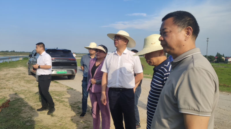 在毛角口堤段,调研组详细听取了我区汛期水位调蓄方式、水利泵站布局等工作的讲解汇报,对我区堤防标准化建设、防汛物资管理等方面提出了指导意见。