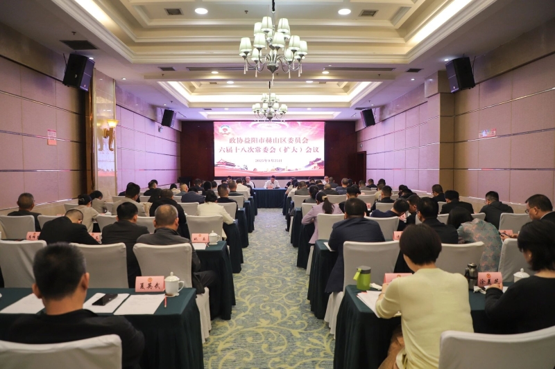 9月25日,政协益阳市赫山区委员会六届十八次常委会(扩大)会议召开。区政协主席会议成员、政协常委参加会议,区政协各委室主任、副主任,各委员活动组组长,乡镇(街道)政协工作分管领导列席会议。