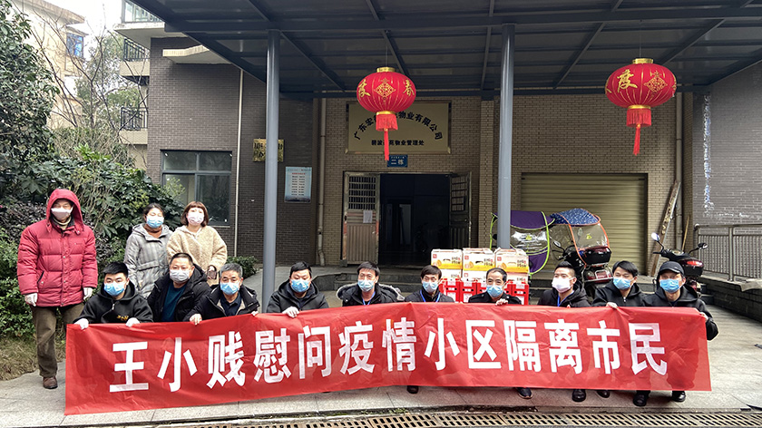 2月3日赫山区市场监管局党组成员、副局长卓泽湘带领局综合协调工作小组成员携手湖南王小贱企业经营管理有限公司,为巴黎馨苑小区和碧波豪苑小区被隔离47户居民每户送去冰糖柚、沃柑、椪柑礼盒各1件,新疆果业红枣、百香果饼各1袋。