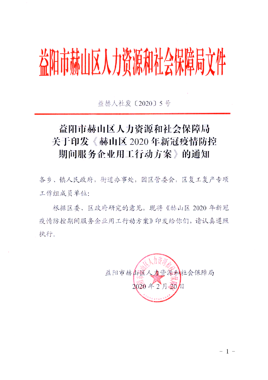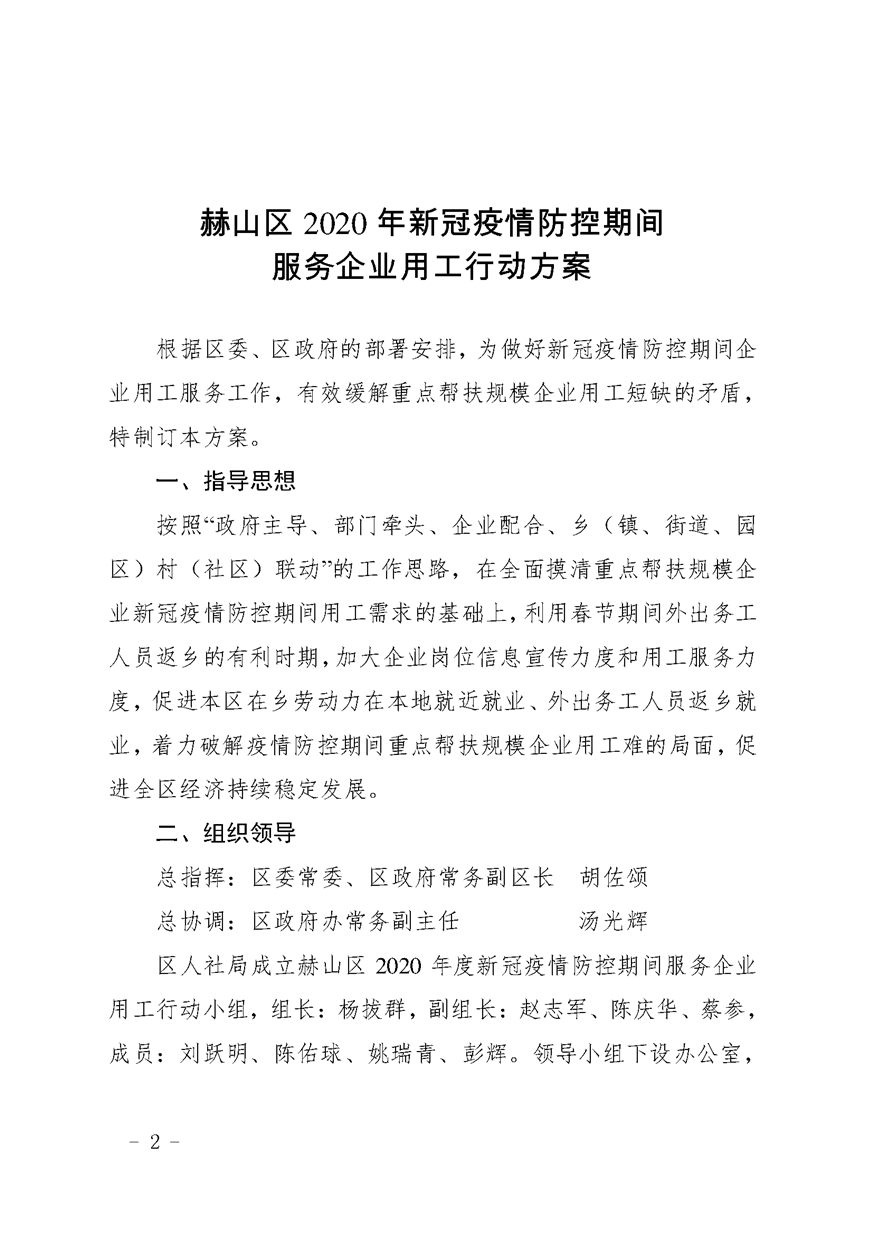 赫山区2020年新冠疫情防控期间服务企业用工行动方案